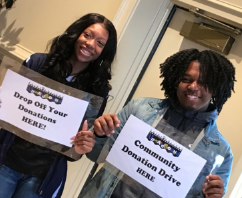 The students collected eight (24L x 24W x 44D) boxes of items filled with toiletries, school supplies, clothing, and non-perishable food items.